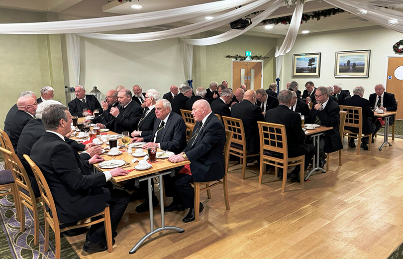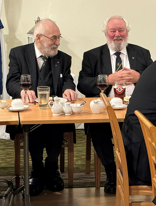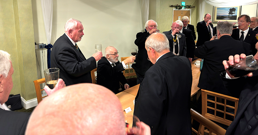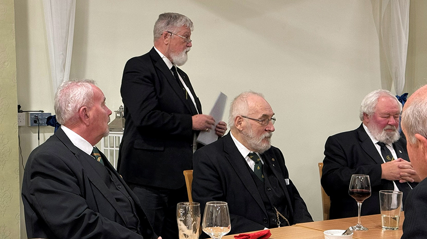| RW Brother Glyn Davies had the honour of proposing the Toast to the Celebrant in a very eloquent manner, referring to some of David’s personal and Masonic experiences. Brethren responded by offering a bumper toast to David. |