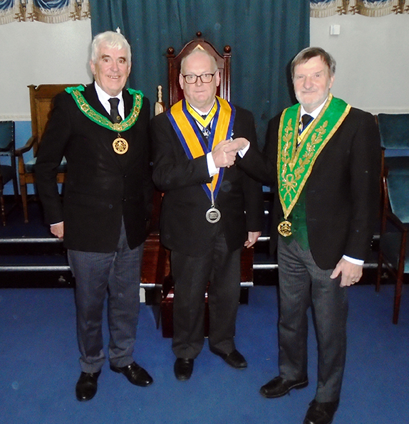 | The District Grand Prefect was greeted accordingly by the Master W.Bro. Arthur Robinson and offered him the Gavel, surprisingly, the District Grand Prefect said he would keep it for a short while and occupy the Chair. |