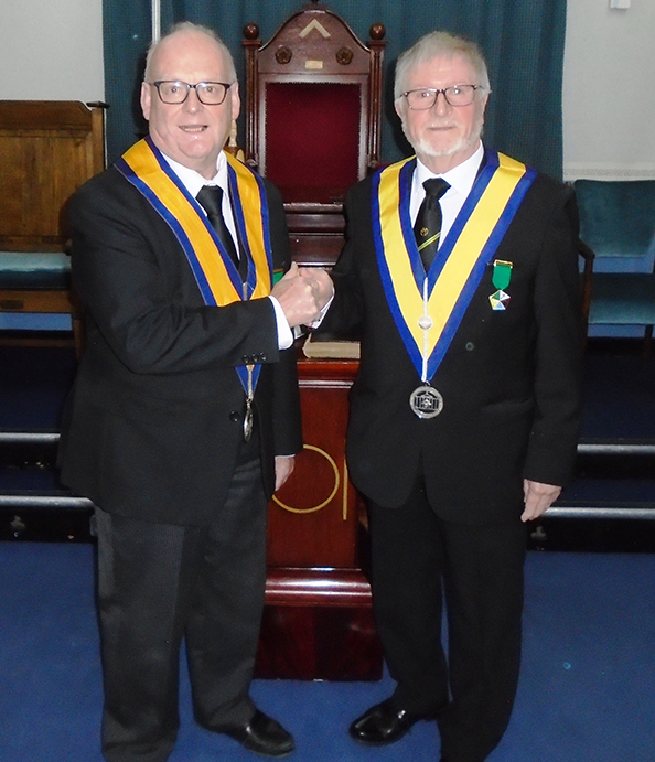 | He explained that in two days time at the District Meeting V.W.Bro. Geoff Catterall was stepping down as District Secretary and taking on the role as Asst. Dist.G. Sec. |