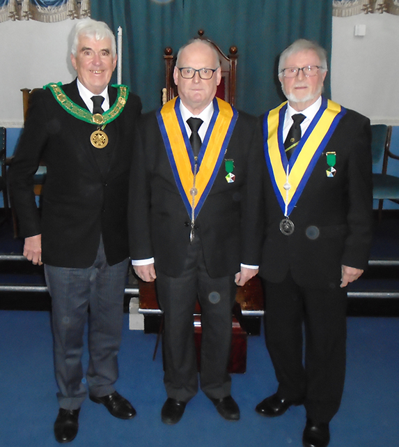 | As the meeting drew to a close the District Grand Prefect congratulated John Cunliffe on becoming Master of St Georges Council, wishing him well for the future, he also congratulated W.Bro. Arthur Robinson for his work over the past year and for the high standard of the Ceremony. |