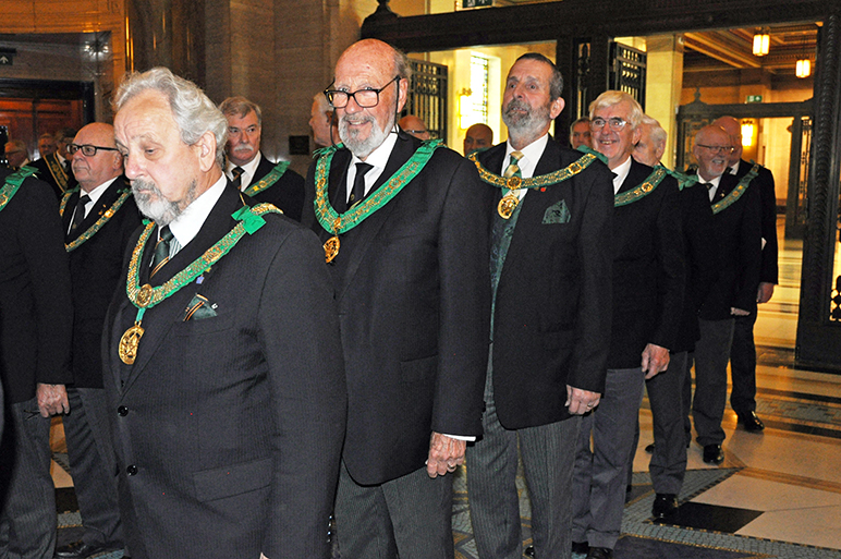 | Arriving at the Freemasons Hall in Great Queen Street, the intrepid travellers from Lancashire joined other Allied Masons from all parts of England and Wales as well as some from overseas. |