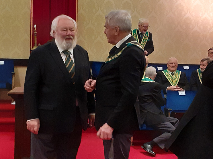 | An added bonus in attending this meeting was that the Grand Master was present as the principal guest, being conducted into the Council by his Deputy Grand DC to warm acclamation. |