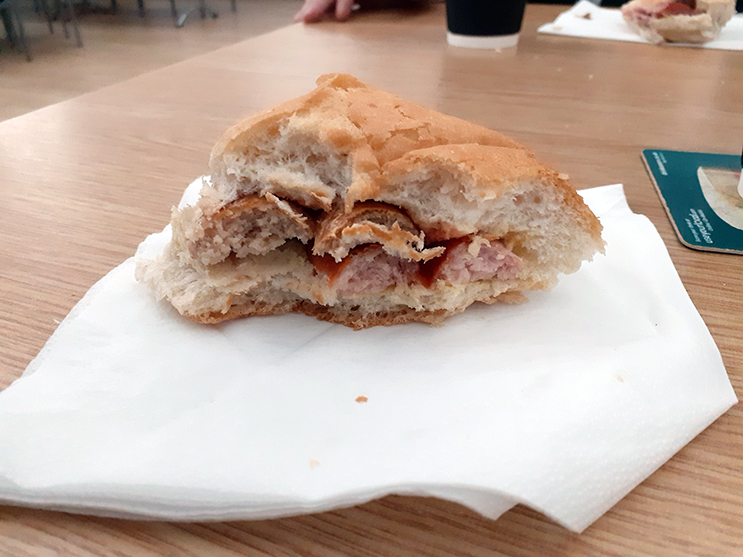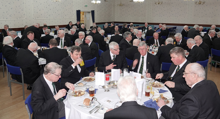 | The welcoming aroma of sausages and bacon wafted through the hall as we arrived, and many of the Brethren availed themselves of the tasty morsels available, tucking into beautiful breakfast barms (or baps etc) washed down with a cuppa. I’m not sure of the health benefits of such fayre, but “ee it were good”! |