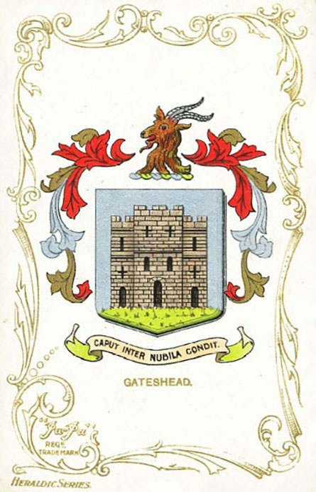 | The second possibility is from a reference by the Venerable Bede, who, in the seventh century, described Gateshead under the Latin name ‘Ad Caprae Caput’, which translates as ‘Goats Head’. He described the area as such in a reference to a monastery on the site. It is suggested that this possibility could have a reference to an area frequented by wild goats. There is also a possibility that there was a totem or emblem with a goat’s head overlooking the Tyne. Interestingly, a goat’s head featured on Gateshead’s old coat of arms. If this possibility is correct, the name must have changed to Gateshead at some point in history. |