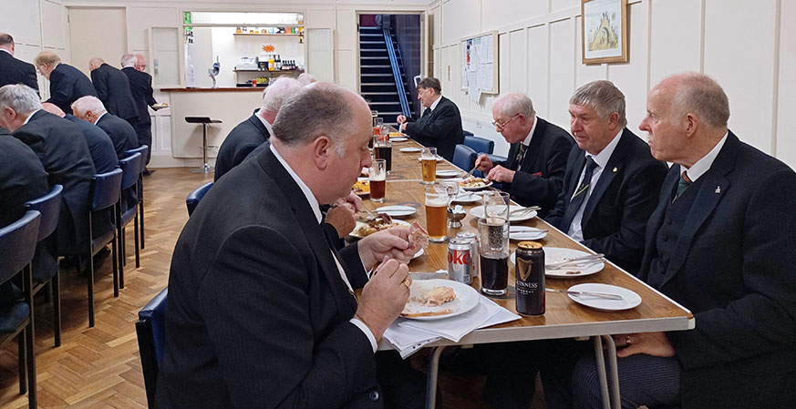 The refreshment which ensued was a lively affair under the control of the John Sarti Asst. District Grand D.C.,