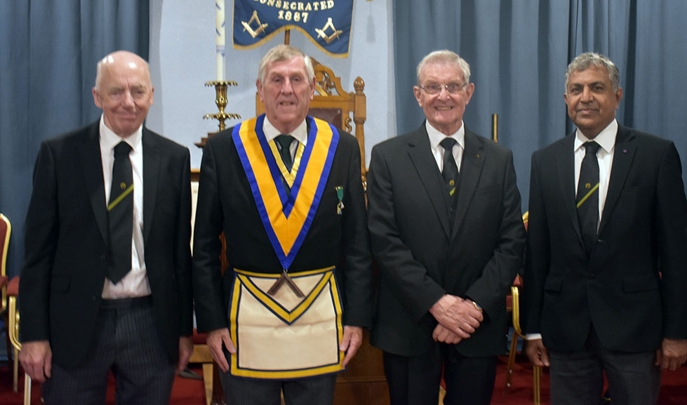 Late absences due to an outbreak of Covid meant that there was some rapid changing of plans and positions. However, WM Keith Beaumont did not let this affect him as he went about opening a Lodge of St Lawrence prior to then opening a lodge of Knights of Constantinople. He then created the two Joes and Jim as Knights of the order in fine style. |