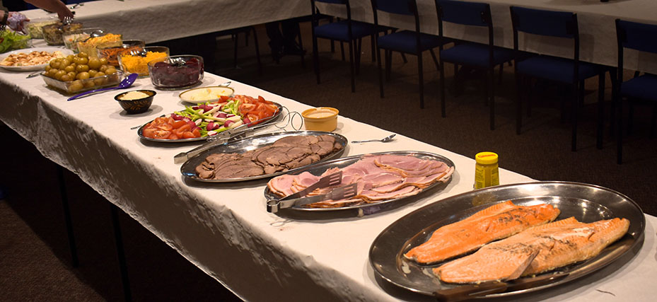 Following the meeting a splendid buffet provided by Elizabeth Seward of Burneside was enjoyed. The beef and salmon were delicious but I felt that the roast ham was the star of the show. Strawberries and cream completed the meal. |