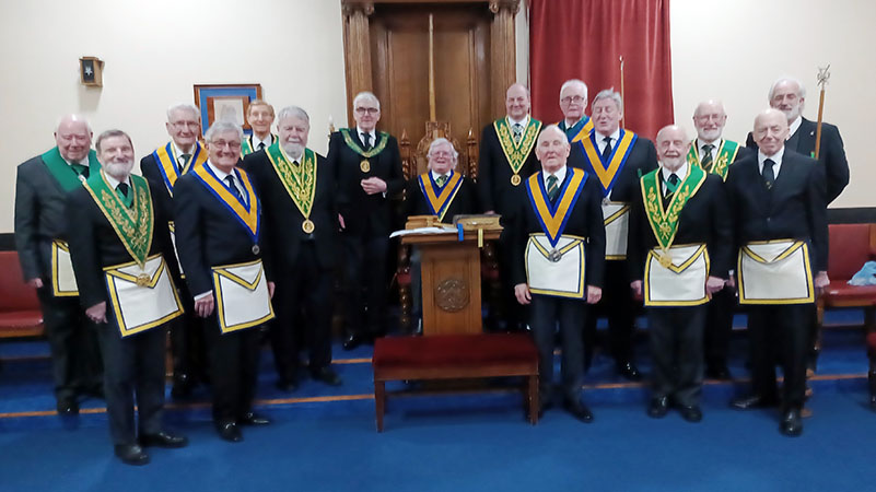 The meeting then moved on at quite a pace, ballots being taken for a new member, Brother Paul Broadly, who would be admitted at the next regular meeting, and Brother Gordon Ivett who was immediately admitted and introduced to the WM as a Joining Member. A demonstration ceremony of the degree of St Lawrence the Martyr followed, and was completed in due form, followed by a collection for charity.