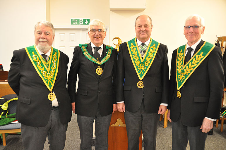 | Leading the deputation was the DGP Paul Snape; he was accompanied by the Dept.DGP Mark Barton, William Richmond and John Bicknell Following an uneventful rail journey, arriving at Crewe, so as to change trains, they met up with Peter Talbot, the District Grand Prefect for Cheshire & North Wales. |