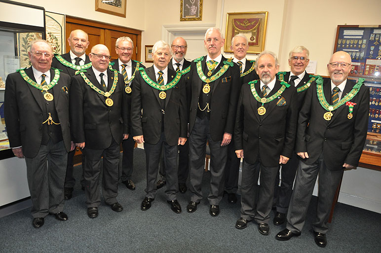 | They were welcomed by Bob Chevin, the District Grand Prefect following the welcome they were able to meet friends and share a welcome cup of tea together with a plentiful supply of biscuits including Jammie Dodgers!. |