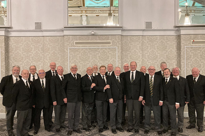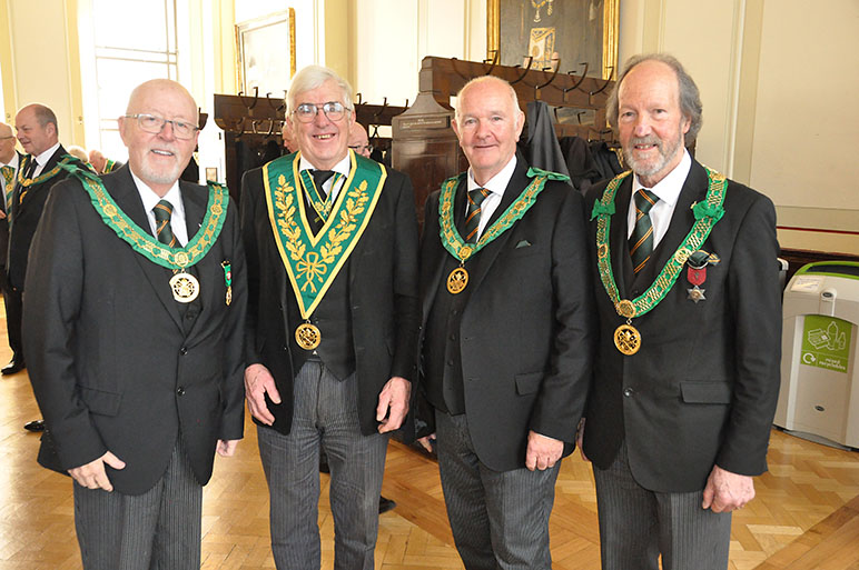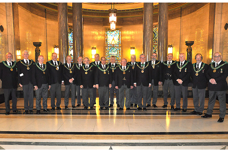 | The Grand Master opened the Council in ‘Ample Form’ and thereafter followed salutations and speeches befitting of these sorts of occasions. The highlight of the meeting was, as always, the appointment and investiture of Officers, and West Lancashire was particularly blessed with no less than 6 first appointments / promotions. These included first appointments for Roy Ashley (acting rank of GStwd), Barry Tomlinson (PGStdB), Richard Higson (PGIG); and promotions for Stuart Mowbray (PGJD), Brian Povey (PGJD) and Jimmy Rogers PGJD. At the end of the investiture, the Grand Master gave a field promotion to a Brother who was 100 years old, and this proud Allied Mason was agile enough to walk up to the Podium and back to his seat without any assistance, what guy! |