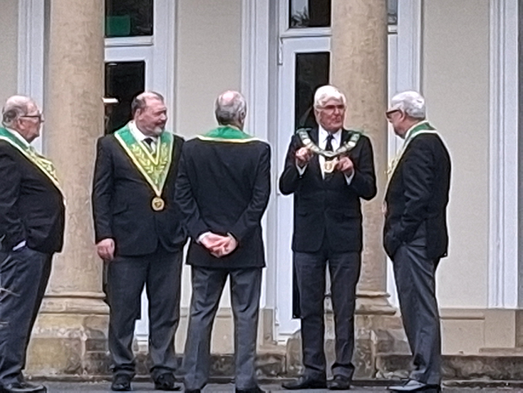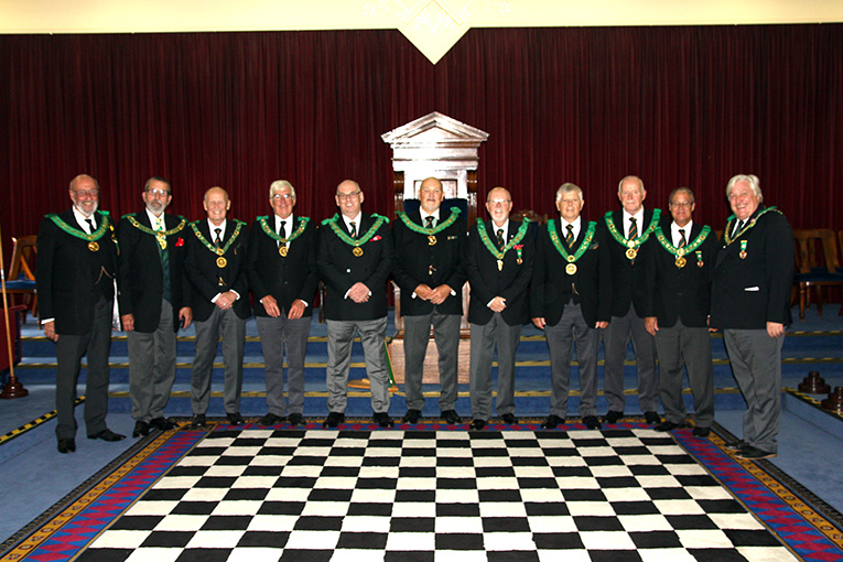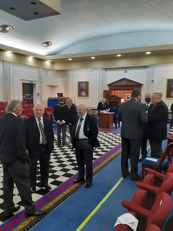 The meeting went well, the DGP processed into the Lodge Room and opened the District Meeting. He welcomed all the guests, and the general business and appointment of his Officers was carried out in due form. Very quickly it seemed, the meeting was brought to a conclusion and the District Grand Prefect, his team and distinguished guests processed out of the Lodge room in fine style. |